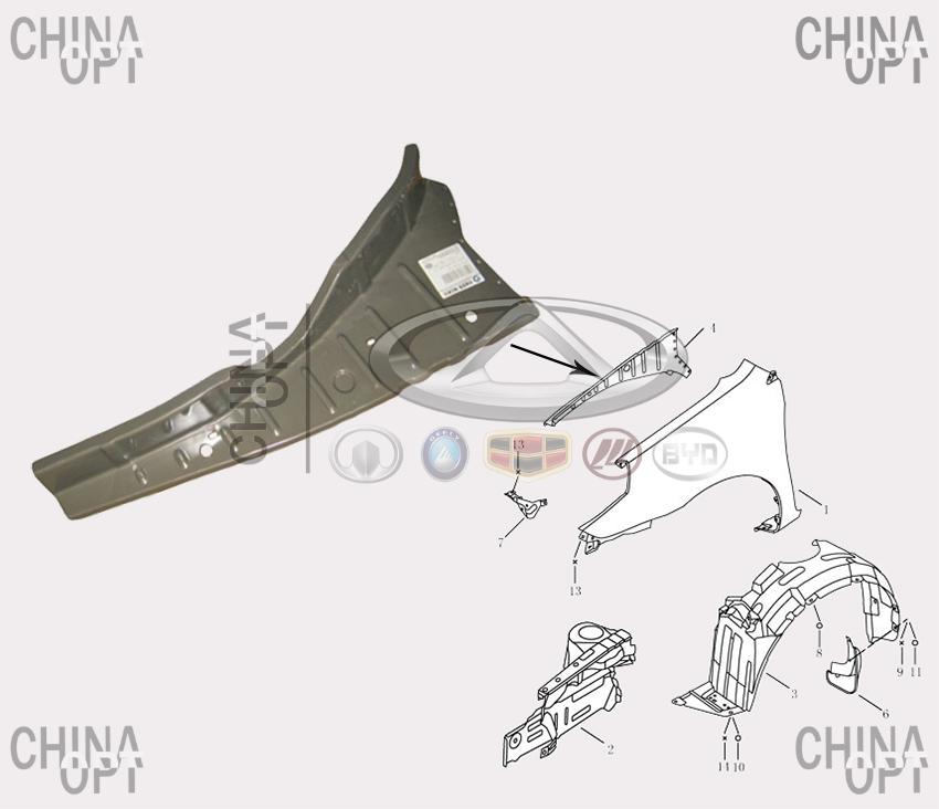 Панель напрямна крила передня права Джилі МК1 МК2 МК Крос ГС6 Geely MK1 MK2 MK Cross GC6 - 101200002002 AFTERMARKET